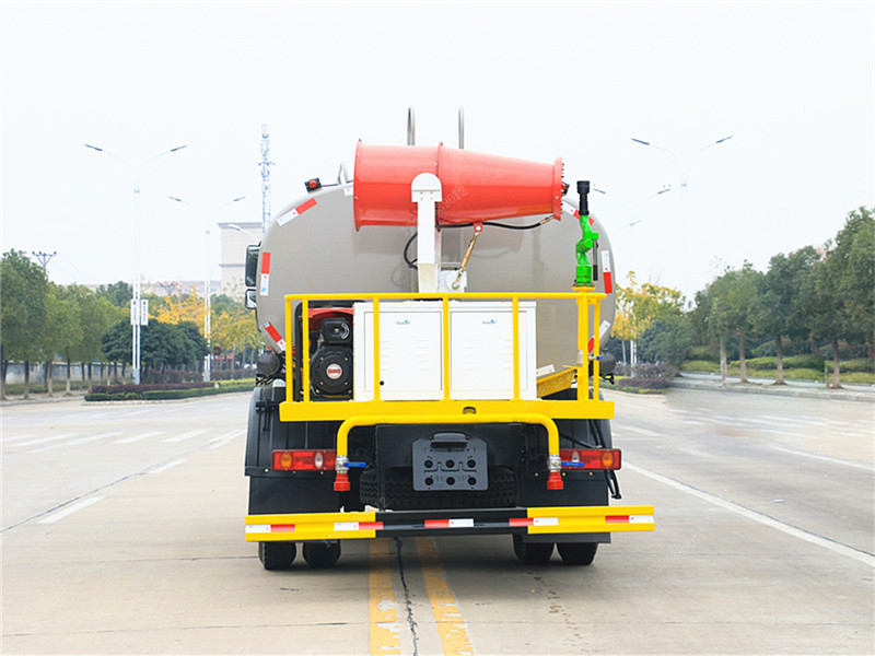 | 上裝配置:罐體采用國標Q235碳鋼板制作,可選用30米、40米、50米中型霧炮,罐體采用機器壓板一次性成型技術,采用先進旋邊機,罐體包罐機工藝保證了罐體制作的精度和美觀。罐體厚度4mm,前后封頭5MM加厚型,罐體實際容積約12立方(12噸),程力獨有烤漆工藝,多層底漆、防腐除銹,面漆噴涂。 功能齊全,配備前沖、后灑、側噴、綠化灑水炮,采用優(yōu)質水泵,合理設計水路管道,氣控取力器,作業(yè)能力強;采用柴油發(fā)電機大功率霧炮機,噴灑距離選裝30-50米射程,運用范圍廣泛。 |