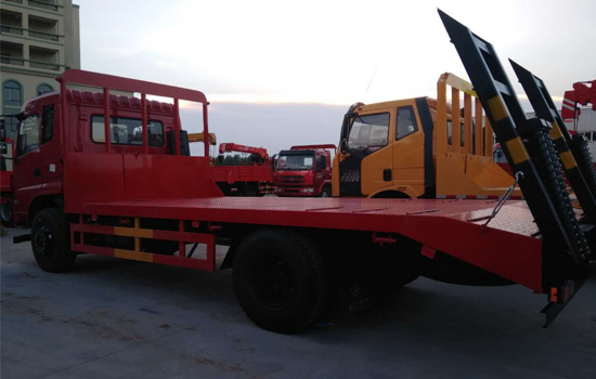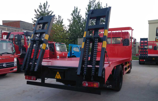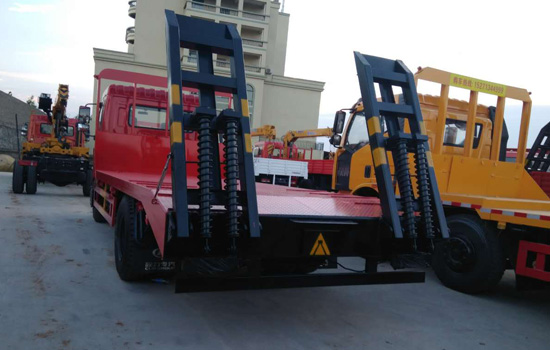 上裝配置:平板底板橫梁采用100*100*5mm方管,底板采用5mm或8mm花紋板,帶加密斜支撐,爬梯采用雙彈簧加強型設計,采用三道筋+雙彈簧加固焊接,可選裝液壓爬梯或折疊加長型液壓爬梯,斜坡處帶后支腿,平板有效板長6.8米(含斜坡),板寬2.5米(可選裝帶左右加寬伸展),可以選擇貨箱帶欄板設計,15噸及15噸以下噸位挖機首選車型!